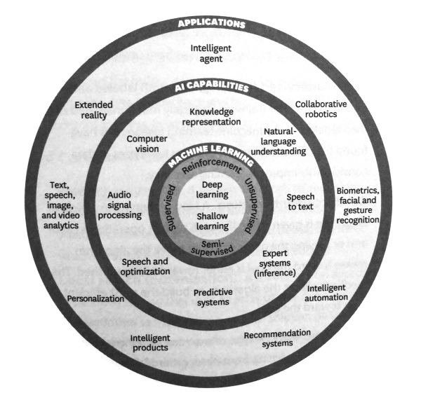 在這種范式下,企業(yè)人工智能分為三個層次。在第一層,企業(yè)定義其用例和業(yè)務應用(原因和內容),利用數據為利益相關者創(chuàng)造更大的價值。在第二層,我們研究支持業(yè)務應用的人工智能功能套件。最后,在第三層(核心),我們探討可用來交付預先確定的人工智能功能(方式)的各種機器學習方法。