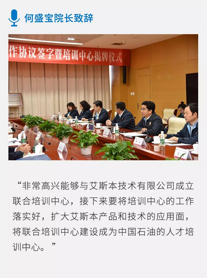 2019年11月13日,艾斯本技術(shù)有限公司和中國(guó)石油天然氣股份有限公司石油化工研究院聯(lián)合成立“艾斯本產(chǎn)品知識(shí)聯(lián)合培訓(xùn)中心”,并舉行培訓(xùn)合作協(xié)議簽約儀式、聯(lián)合培訓(xùn)中心揭牌儀式和艾斯本認(rèn)證用戶證書頒發(fā)儀式。